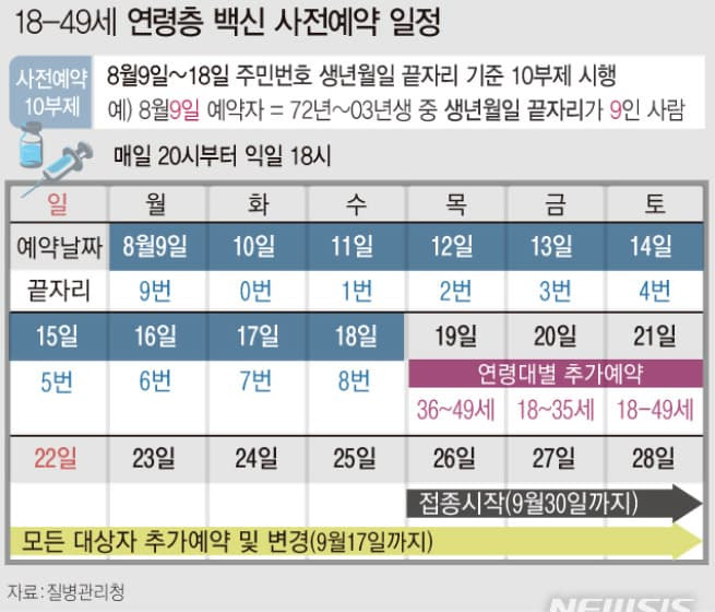 18~49세 코로나 백신 접종 예약 10부제 실시(10대, 20대, 30대, 40대) from blog.kakaocdn.net 예약 취소 등으로 인한 잔여 백신 예약 시스템은 5월 27일 개통 예정입니다. 코로나19 예방접종 온라인 예약은 현재 접속 중인 해당 홈페이지에서 진행하실 수 있습니다. May 10, 2021 · 코로나 백신 접종순서 4차는 18세 이상과 그외 모든 시민들입니다. 잔여백신 다른 말로 코로나 노쇼 백신이라고 합니다. 일단 그럼 아래 뉴스를 통해서 어떻게 4차 재난지원금 대학생 정부지원금을 받게 되었는지를 살펴보는 시간을 가져보도록 하겠습니다. May 12, 2021 · 코로나 19 예방접종 방법 (연령별 백신 접종시기, 백신 접종 사전예약) 1. Jun 07, 2021 · 코로나 백신 접종 예약을 완료했다면 코로나 백신 접종 예약을 완료하면 1시간 이내에 예약 일시, 접종기관, 접종 백신 종류가 포함된 문자메시지를 전송받을 수 있고, 혹시 접종 당일 건강 상태가 좋지 않은 경우에는 예약된 접종기관에 미리 연락하여 접종 일정을 변경한 후 건강 상태가 좋은 날. May 25, 2021 · 반갑습니다.